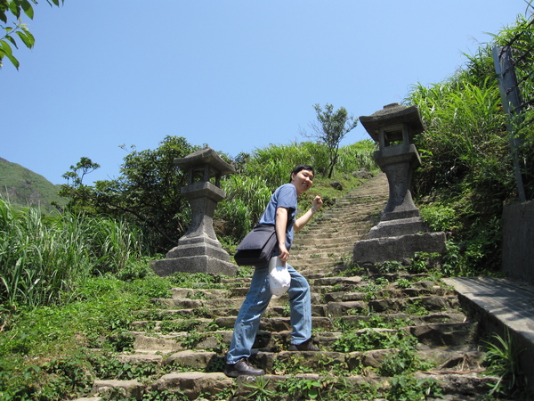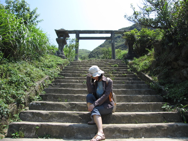 黃金神社位在博物館園區邊陲的山坡上,頂著大太陽,我們走了好長一段樓梯才到,