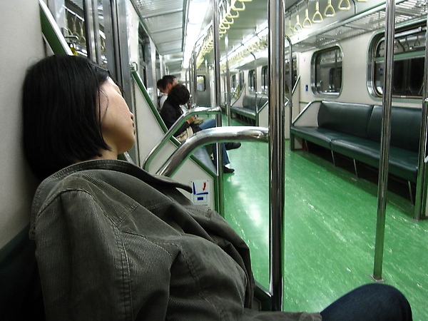 累了一天,在火車上睡著的模樣被偷拍了