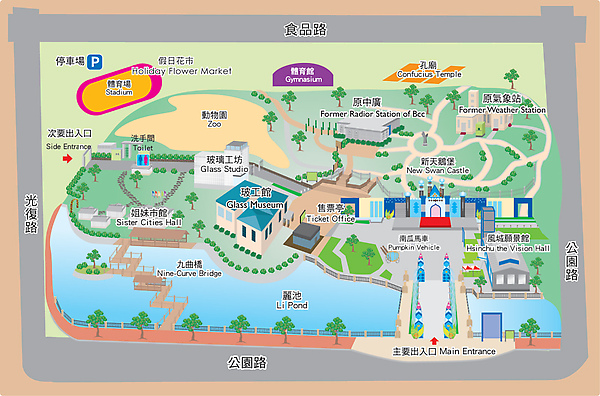 還有動物園、願景館(塵封中,沒有開放)、池塘、體育館…