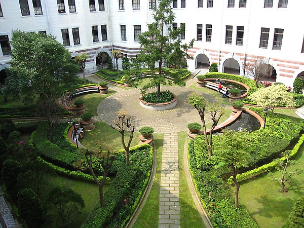 鳥瞰呈現「日」字型的總統府建築,中庭分為南、北兩苑,