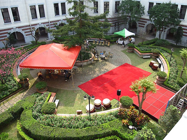 開放參觀的這天,中庭有販賣飲料和小餅乾,