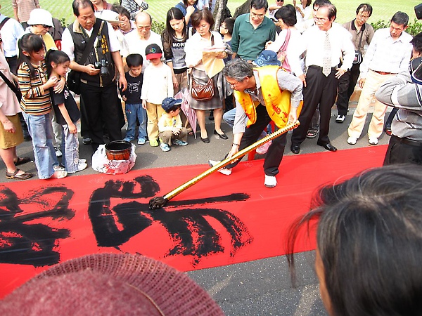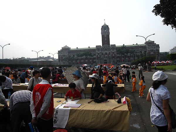 看見凱道上正舉辦「庚寅迎新‧揮毫開筆」活動,