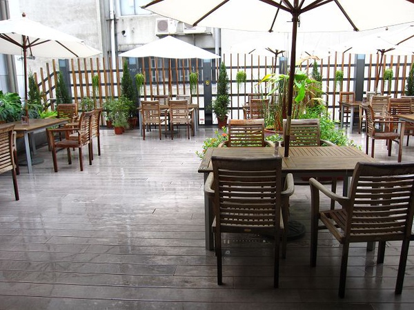 在恐龍餐廳吃完午餐,戶外突然下起不小的雨,