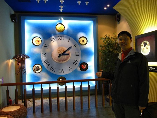 時鐘周圍的蛋糕每隔一下下會依序轉一圈。