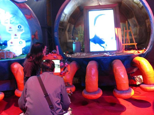 逛著行動巨蛋裡幾個還沒打烊的攤位,