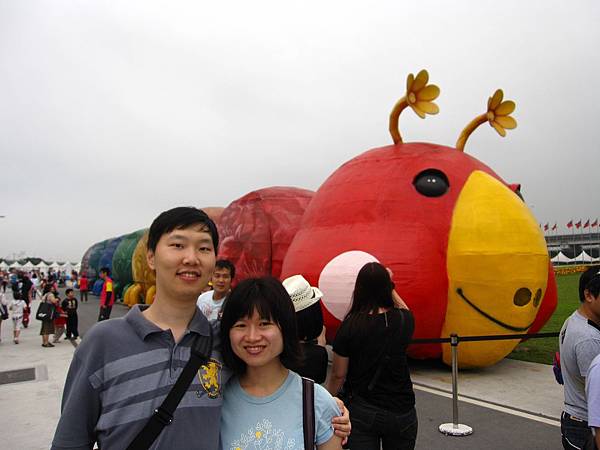飽食飯足後我們又跑去跟彩虹毛毛蟲合照,