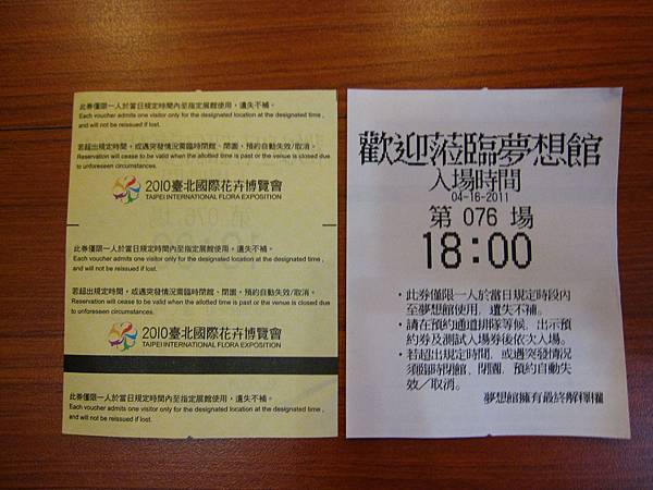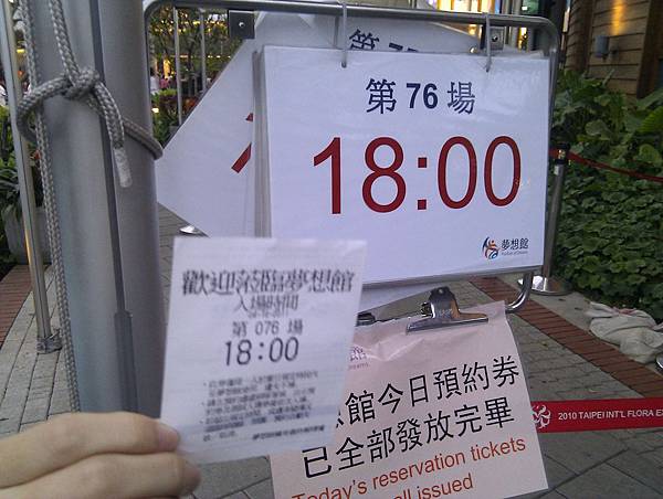 ▲得來不易的夢想館預約券,竟拿到晚上六點場,