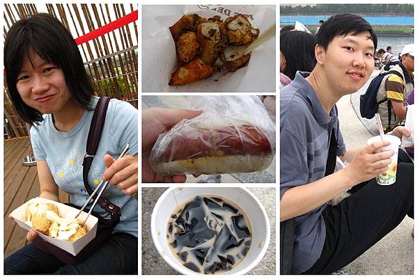 買了好吃的臭豆腐、花枝燒、大腸包小腸跟仙草凍奶茶。