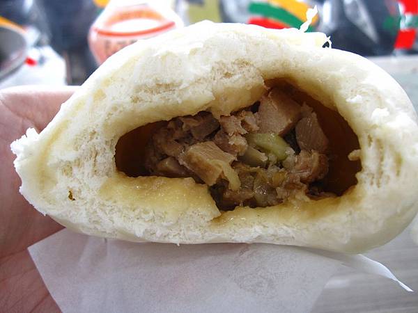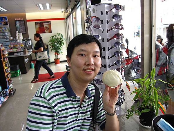 總之鐵門是下拉的,於是我們拎著包子到7-11享用。