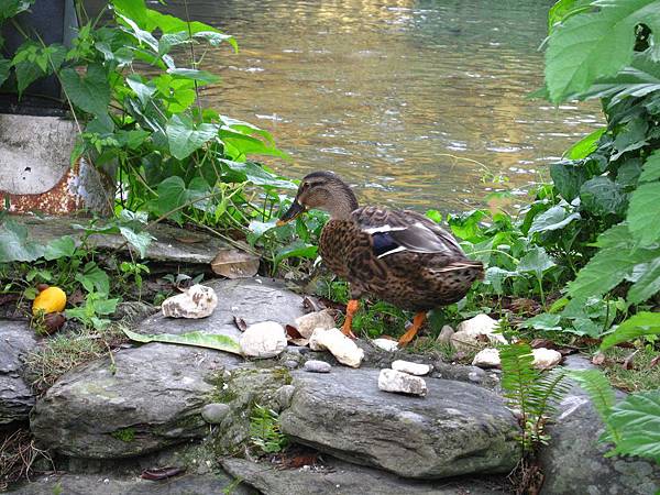 榕子在水塘逗鴨子時,我聽到有人大聲喊我~