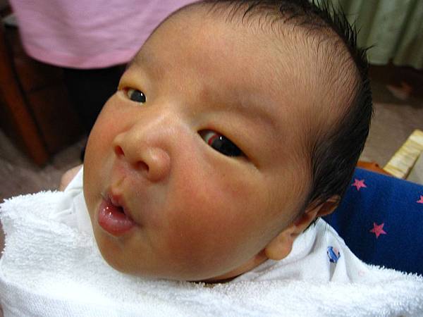 ▲2月27日,因為出生時在產道受到壓迫,所以眼睛紅紅的,滿月就消退了。