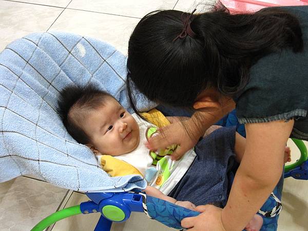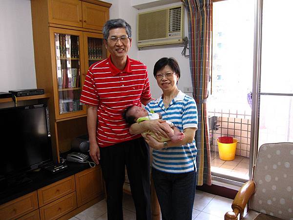 結果小瓜一直睡,爺爺奶奶要回家前才睜開眼,開始呵呵笑。