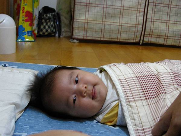 「小瓜昨天晚上睡覺很不安穩,一直扭來扭去,