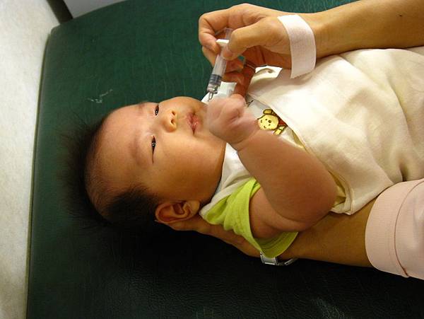 ▲護士餵食口輪輪狀病毒疫苗,冰冰涼涼的,好像很好喝