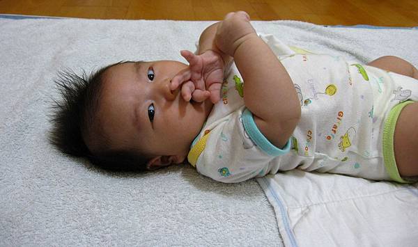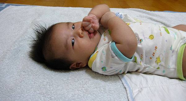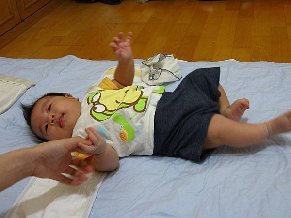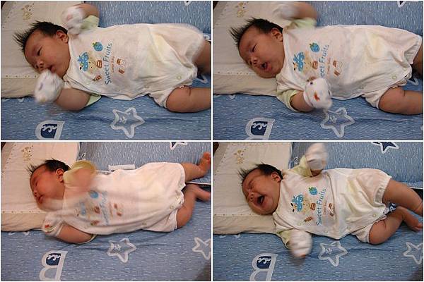 特別在他想要睡覺的時候,可是手的協調度還不夠,