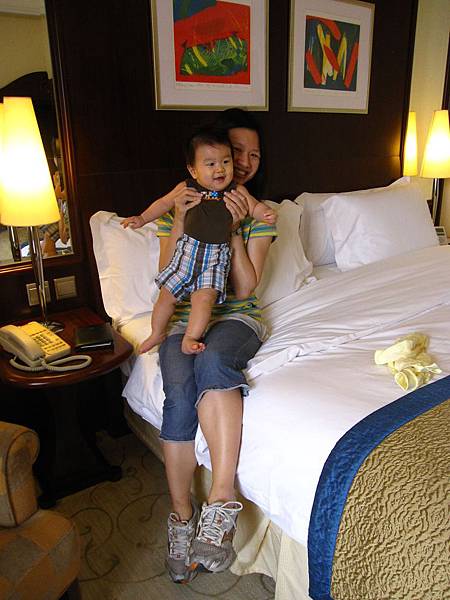 榕子和我的房間,有一張King size的大床以及一張嬰兒床,