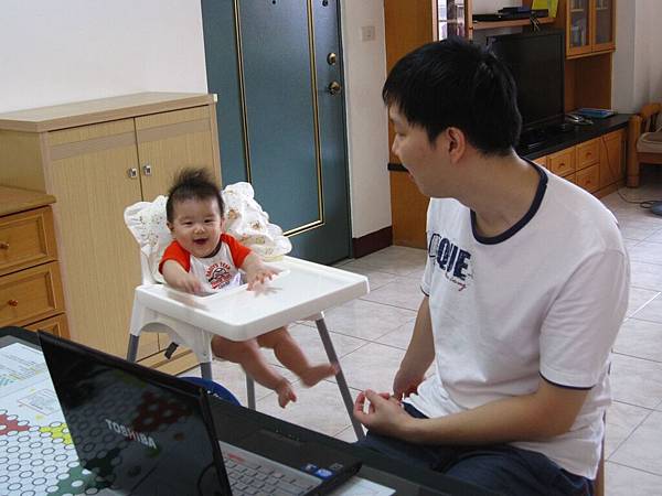 一直咯咯笑。小孩都會這樣子吧XD」