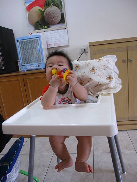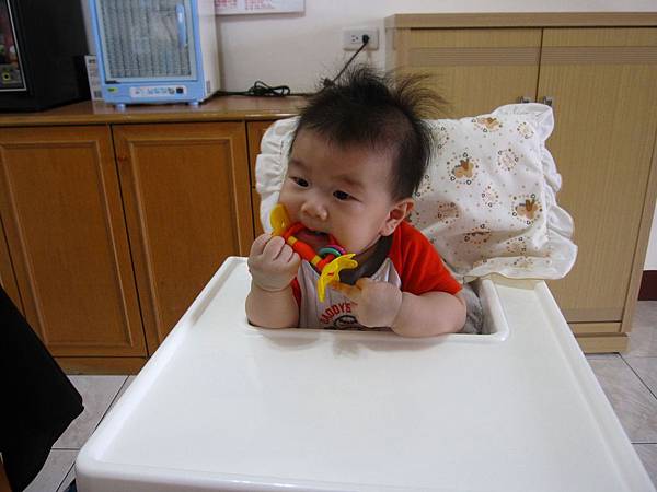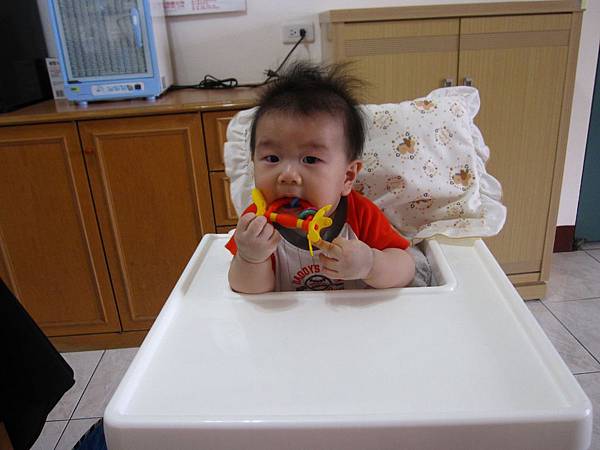 手搖鈴的直徑太大,塞不進嘴巴,很激動!