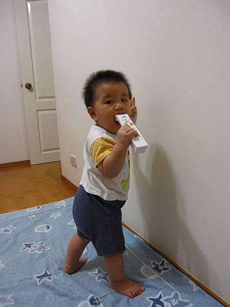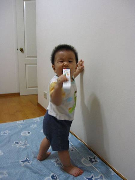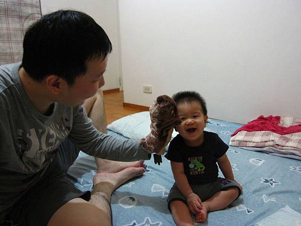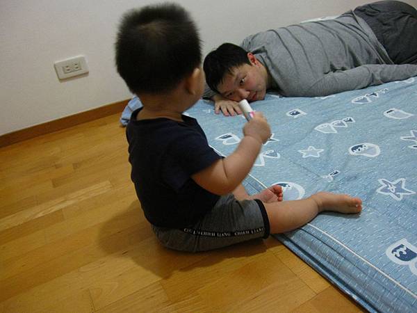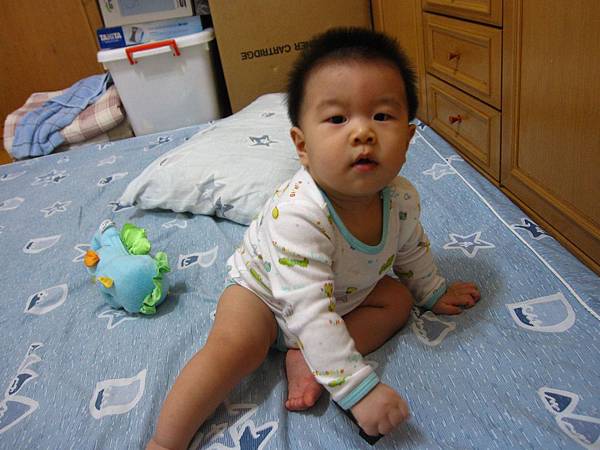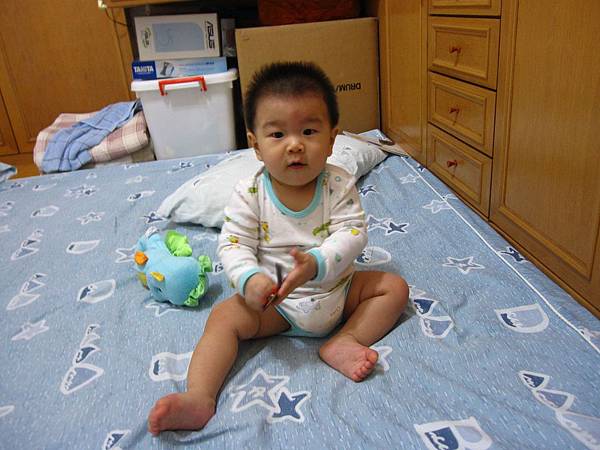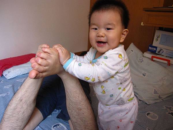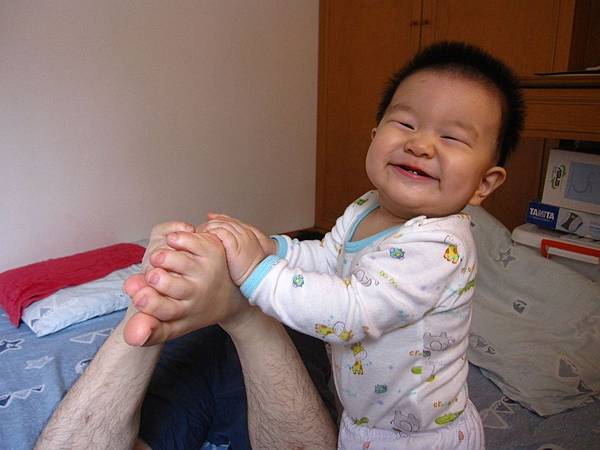 還有,他在床上爬行時, 還蠻愛張開大口在把拔瑪麻臉上舔跟咬,