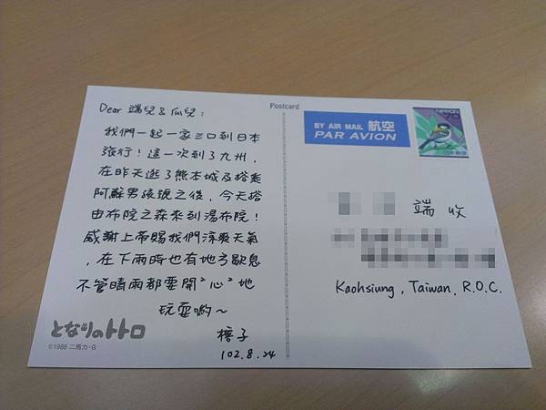 上車前,我利用所剩不多的時間趕緊來寫明信片並在由布院車站前投郵筒。