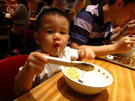 最可愛的是小瓜,他用自己的餐具吃麵,吃得津津有味,超棒的。