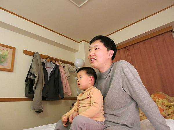 睡前,父子倆看電視上的煙火,看得津津有味。