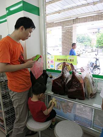 排隊的時候,小瓜寶寶在隔壁的全家等我,桌上是我們的戰利品。