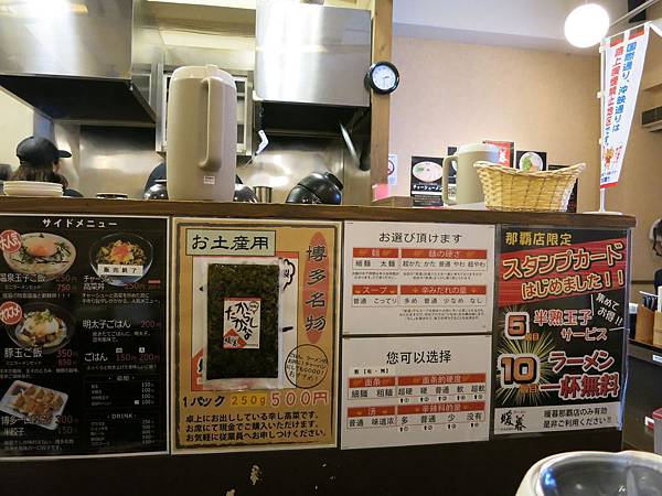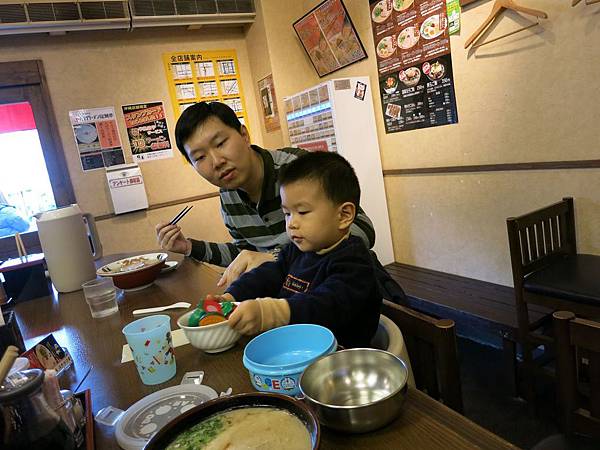 媽媽和我們聊天,很熱心的推薦豚玉飯+迷你拉麵、烈火拉麵(辣)和煎餃好吃。