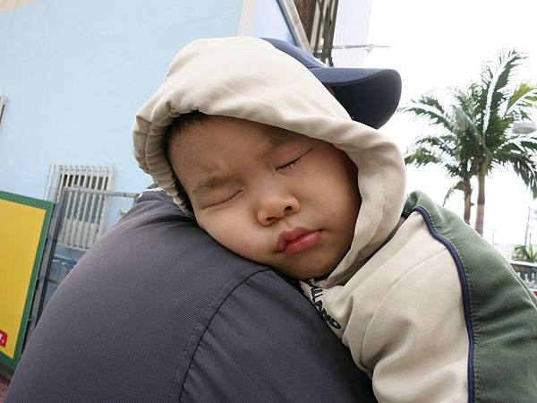 ▼小瓜一臉愛睏樣,換完尿布後或許應該讓他在飯店睡飽再出門。