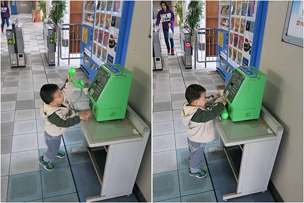 一台冰淇淋自動販賣機、一台公共電話,就吸引他好一陣子注意力。