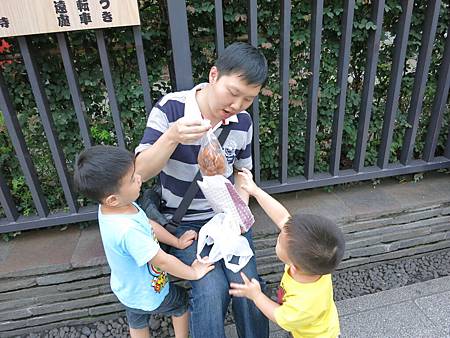 把拔瑪麻吃著豬肉餅,小孩就吃冰淇淋,一片祥和。