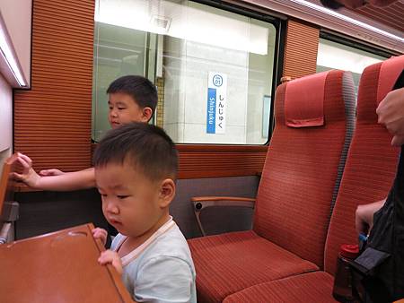 新宿到箱根湯本接近一個半小時的車程,兩個寶寶都坐不住,