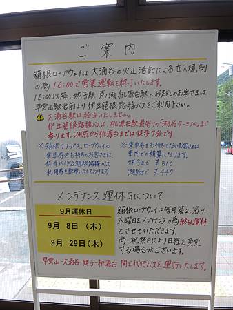 在購買周遊券時,票務人員已經提醒過,隔日(9/28)纜車要停駛維修,