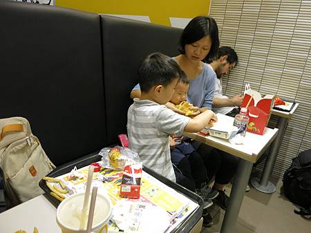 三層樓高的麥當當擠滿了人,我們好不容易找到棲身之處,