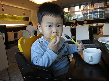 第二天早上,在飯店享用早餐。