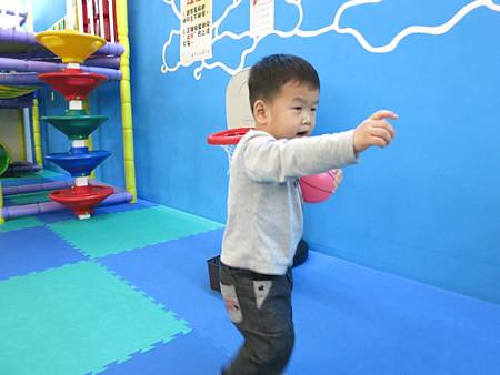2. 滑梯旁的小籃球架,提供3顆幼兒版籃球,